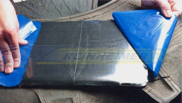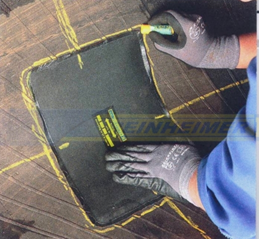 Fuer die Schadensbearbeitung enthaelt das Set 2-Radial- und 2-Diagonal-Deckenpflaster, Kontaktprimer/Reiniger,